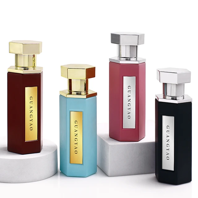 Custom Frosted Color Hexagon 50ml Glass Empty Perfume Spray Bottle Luxury Custom Lid Packaging Gift Box